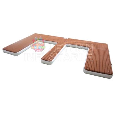 The Inflatable dock is very popular The faux teak traction pad is included, along with 10 stainless steel D-rings along the sides of the dock. The endless fun of floating on the water