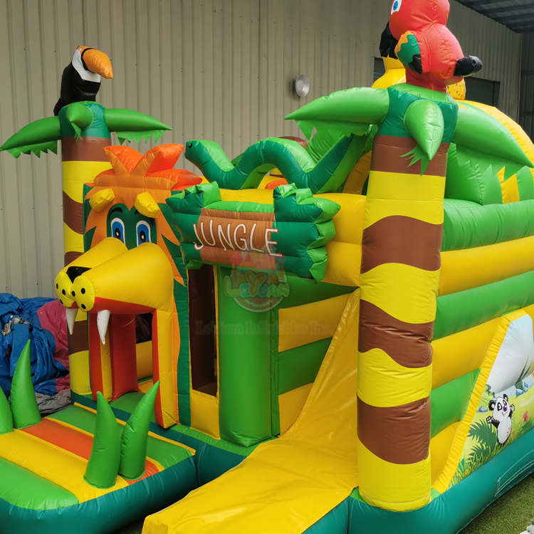 This jungle themed safari castle with slide offers fun jumping, climbing and sliding option for the kids! The safari-themed 3D design is perfect for any childhow loves these jungle creatures. The inflatable multiplays castle has a visible area that the parents can monitor the safety of their children. The slide is designed with a high wall and roof to prevent any accident.